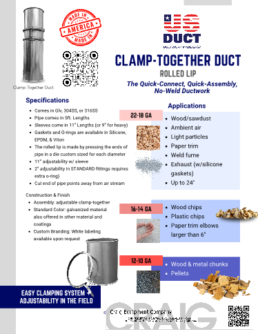 Eliminate welding and rivets. US Duct’s Clamp-Together (Rolled Lip) ducting provides a professional, airtight seal that installs in seconds and adapts to your changing needs.