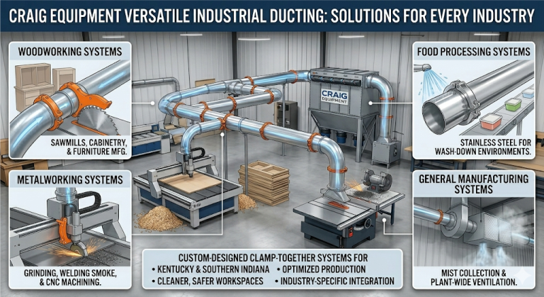 Don’t let a complex duct installation slow down your production. Our team at Craig Equipment can provide a full system take-off and 3D design to ensure your US Duct system is optimized for performance.